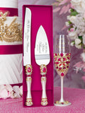 Add elegance to your big day with this champagne red quinceanera cake knife and server set, complete with one stylish glass. A lovely addition to your decorations quinceanera party setup and a great alternative for those who want something compact yet striking. Fast shipping—create lasting memories in style!