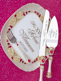 Celebrate with elegance using this champagne red quinceanera cake knife and server set, including a coordinated plate and fork. A perfect finishing touch for your decorations quinceanera party and beautifully pairs with a quinceanera candle. Ships fast—make every detail shine on your special day!
