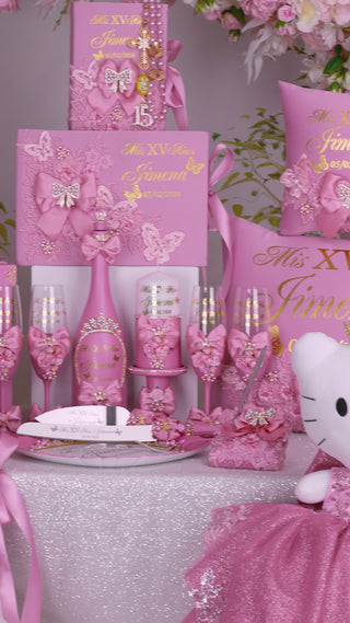 Dusty Pink with Bow Quinceanera mega package with Kitty