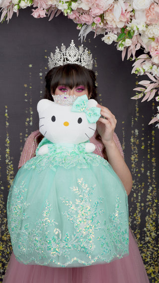 This plush toy is dressed to impress in a stunning fucshia dress, exquisitely tailored to perfection.