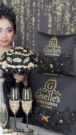 Black Quinceanera pillows set and teddy bear