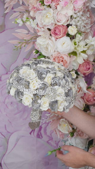 - Bouquets: Create stunning bouquets using white roses, silver foliage, and black ribbons or wraps. Add sparkling elements like rhinestones or pearl pins for extra glamour.