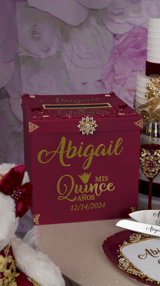 From your burgundy quince bouquet to the brindis set, money card box, and personalized teddy bear, each piece connects your story into one breathtaking vision. Whether you’re celebrating a Sweet 16 or your traditional Mis Quince Años, the rich tones of burgundy paired with gold will always symbolize elegance, pride, and unforgettable memories.