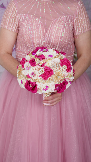 Capture the essence of your quinceañera with our fuchsia mis quince bouquet and magenta quince ramo, beautifully crafted to complement your style. And as you dance the night away, hold onto memories with our hot pink quinceañera bouquet, a stunning keepsake of your special day.