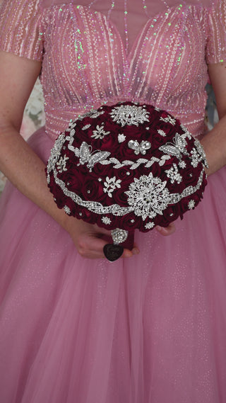 Make Your Quinceañera Party unique with Burgundy Silver Champagne Bottle!
