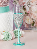 Elevate your Quinceañera celebration with our stunning Turquoise 1 champagne glass, designed to capture the essence of your special day. This exquisite glass features a beautiful turquoise hue, perfectly symbolizing joy and elegance.