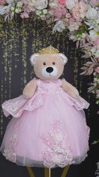 El diseño de un evento exitoso conecta cada detalle. Las cintas de tu ramo combinan con los cristales de la tiara, las copas de brindis hacen eco del brillo de las velas y el vestido de tu osito de peluche refleja el resplandor de tu corona. Esta repetición visual crea armonía, algo que los invitados tal vez no noten conscientemente, pero que siempre sentirán.