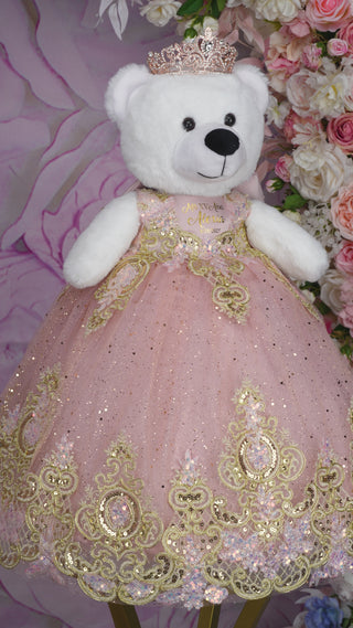 Abraza la tradición con nuestroOsito de peluche Última Muñeca Quinceañera, vestida con un precioso vestido floral en tonos oro rosa y rubor. Este osito de peluche simbólico es una parte preciada de la celebración de la Quinceañera, ya que representa la transición de la niñez a la adultez. Nuestro osito de peluche, con sus intrincados detalles y su suave tela, es un recuerdo significativo que atesorarás por siempre.