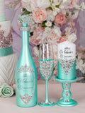 Paquete de Quinceañera Turquesa con Botella, Vaso y Vela